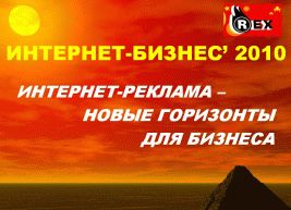 1 октября 2010г. в Киеве состоится XII Международная конференция «Интернет-Бизнес 2010». В конференции примут участие представители ведущих украинских и зарубежных Интернет-компаний и веб-проектов из России, Беларуси, Эстонии и Украины, что позволит получить реальную картину рынка Интернет-рекламы, а также получить информацию о новых решениях в сфере Интернет-технологий как в Украине, так и за рубежом. Конференция будет проходить в рамках XIV международной выставки рекламы REX 2010.